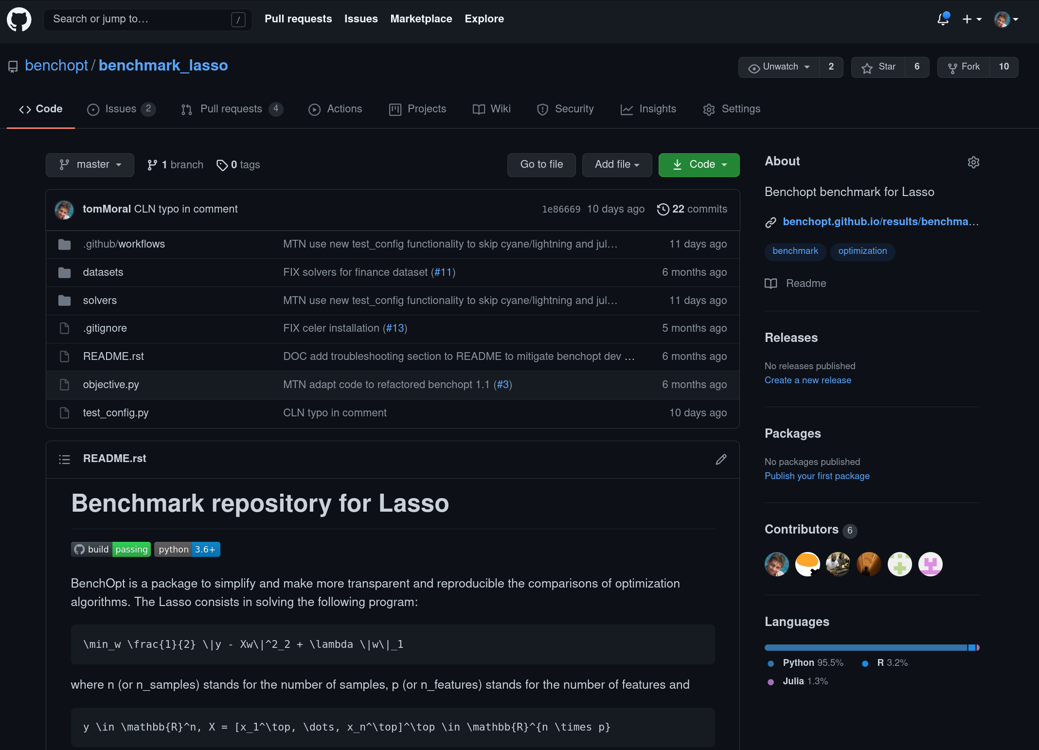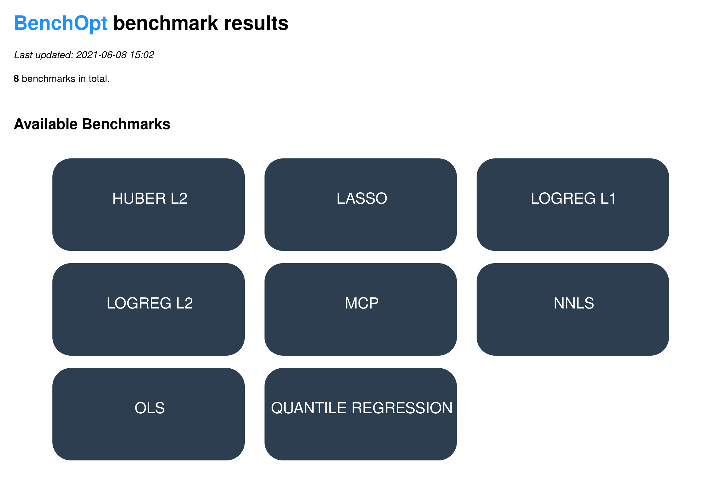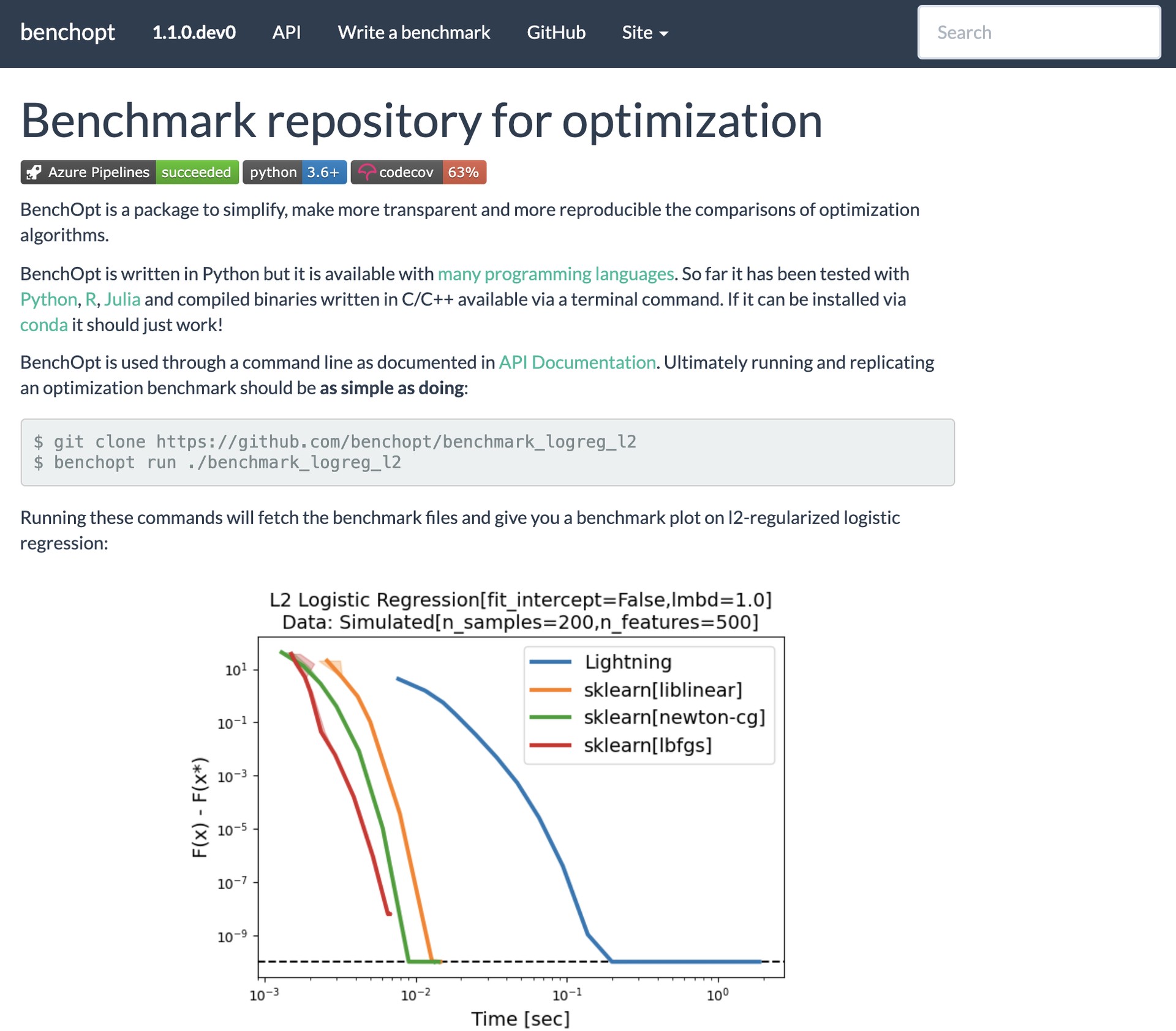 benchopt: Publishing Resultsbenchopt also allows easy publishing of benchmark results: