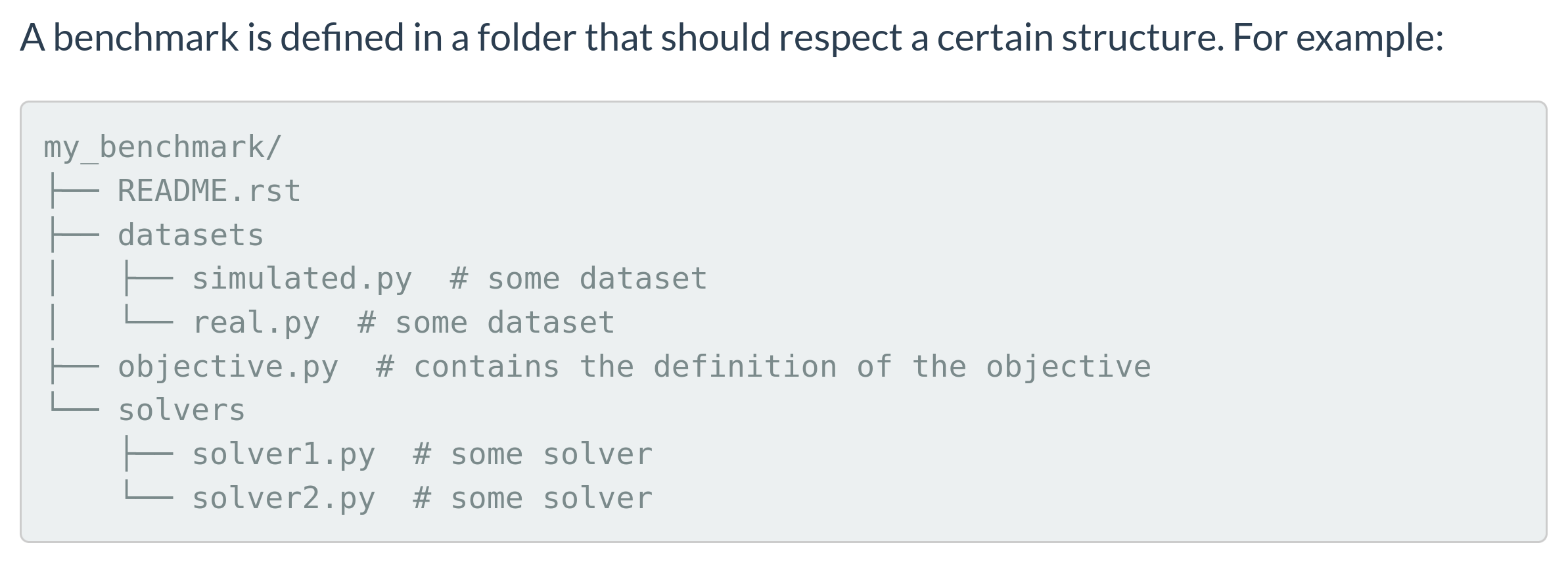 objective.py file with an Objectivesolvers with one file per Solverdatasets with Dataset generators/fetchers
